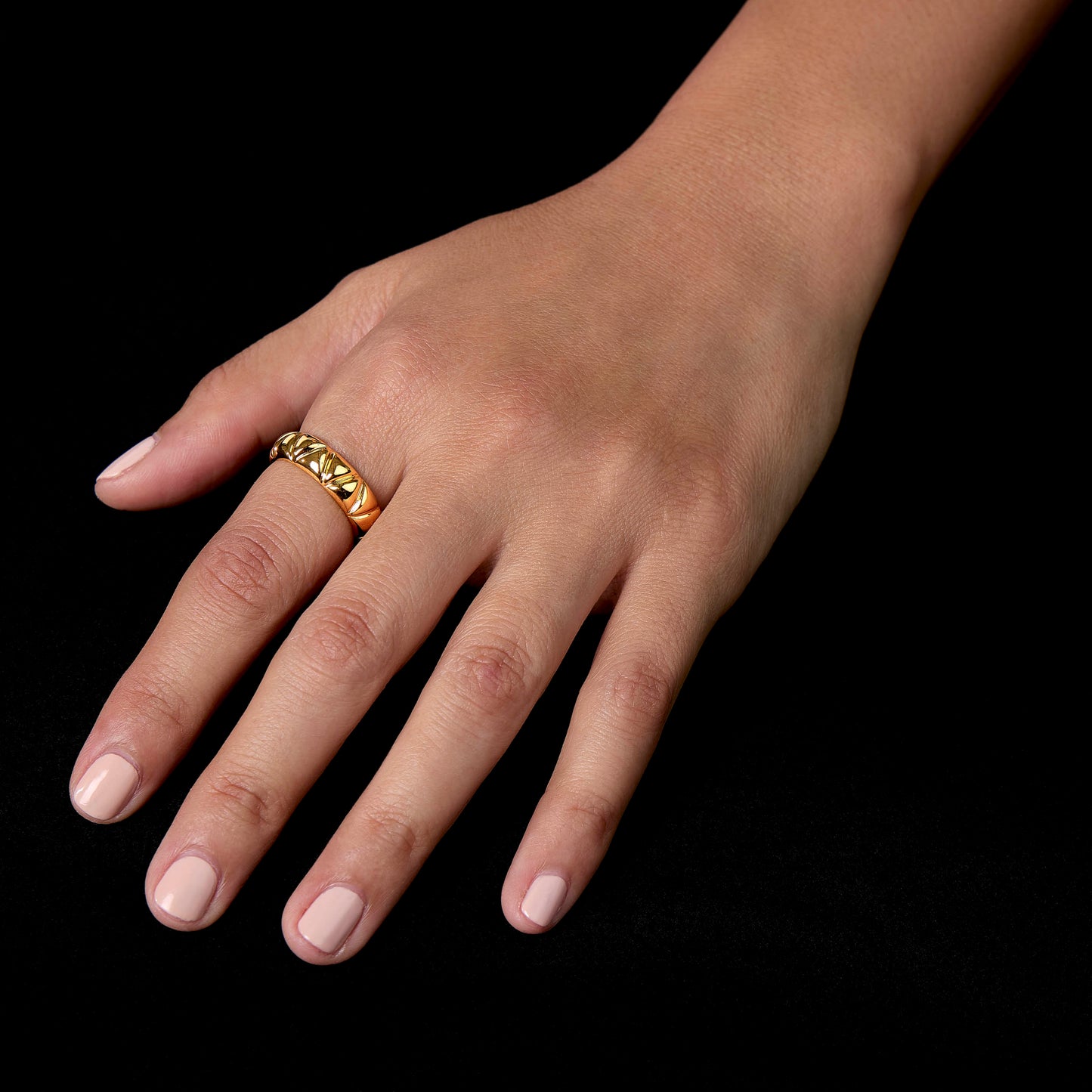 The Tribeca Ring is a pattern of triangles that form a eye-catching sculptural piece. Wear it on its own or pair it with our Tribeca Earrings for a cohesive downtown chic look.