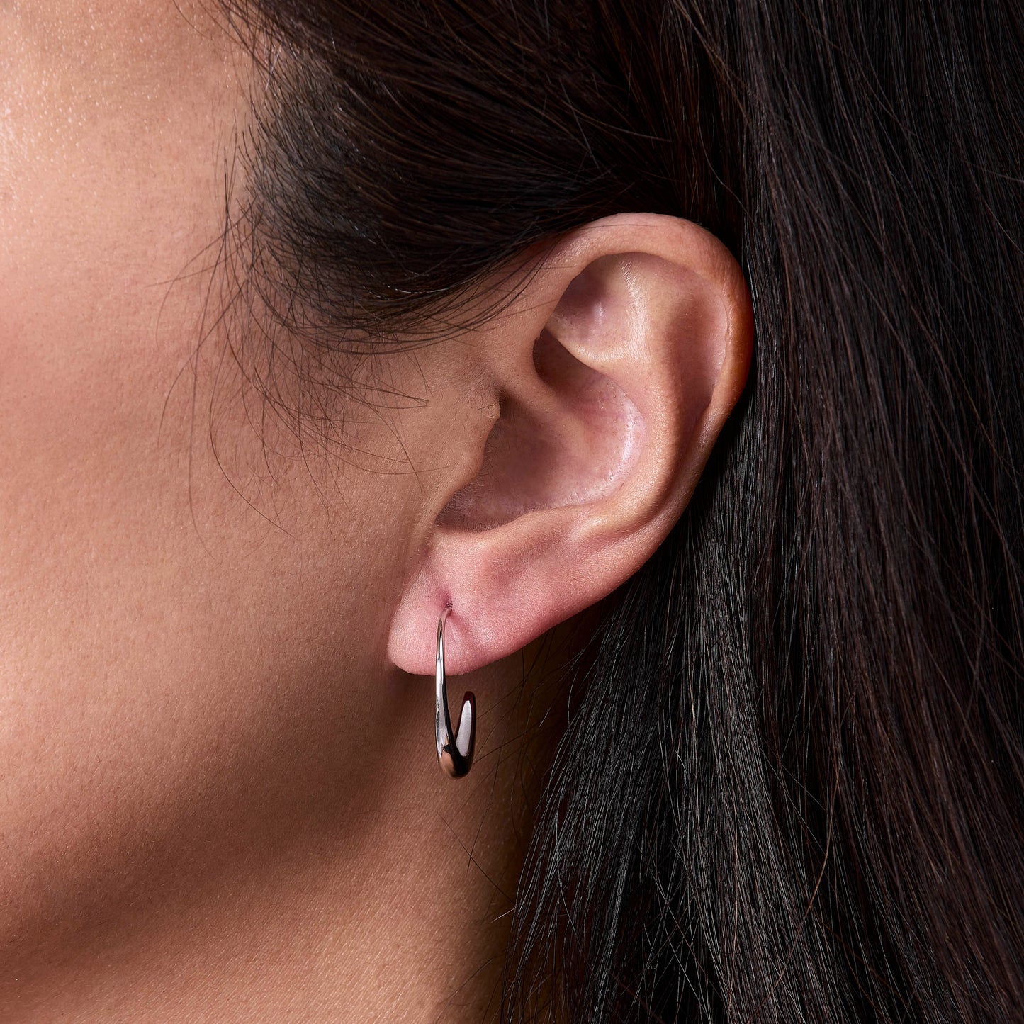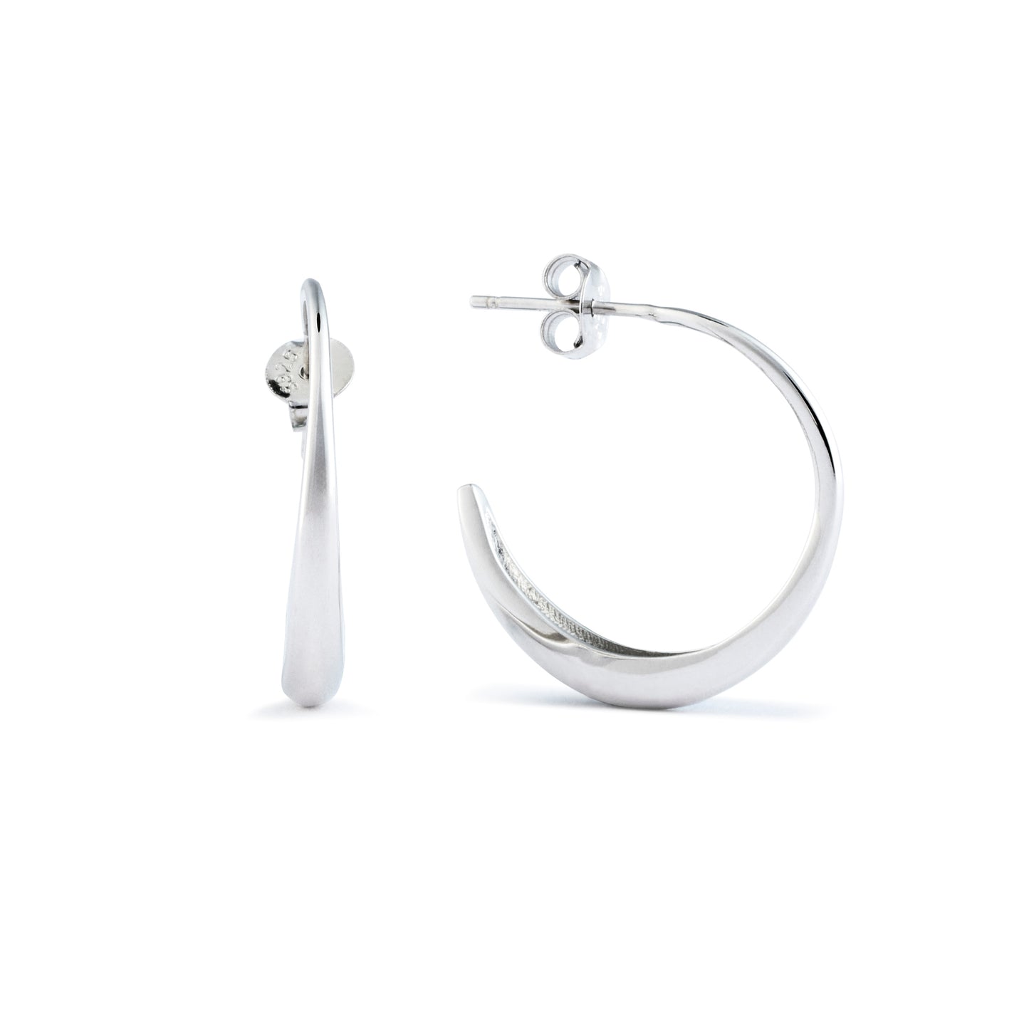 These not-so-basic C-shaped hoops have a narrow front profile offset by an unexpected wider side profile for an artistic flair.